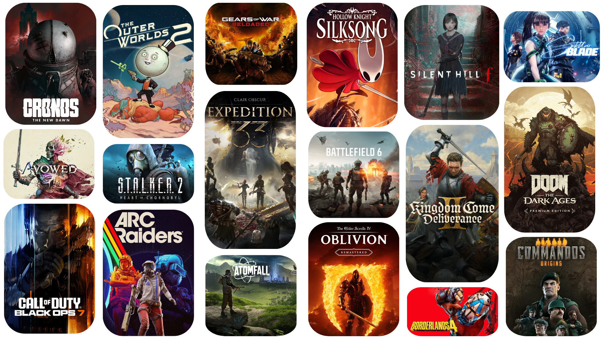 DOOM: The Dark Ages підштовхує до екшену завдяки поєднанню класичного металу і сучасної електроніки, тоді як S.T.A.L.K.E.R. 2 тримає у напрузі дарк-ембієнтом. The Outer Worlds 2 відзначається ретро-футуристичними мотивами і джазовими елементами, що додають космічній пригоді гумору і легкості.